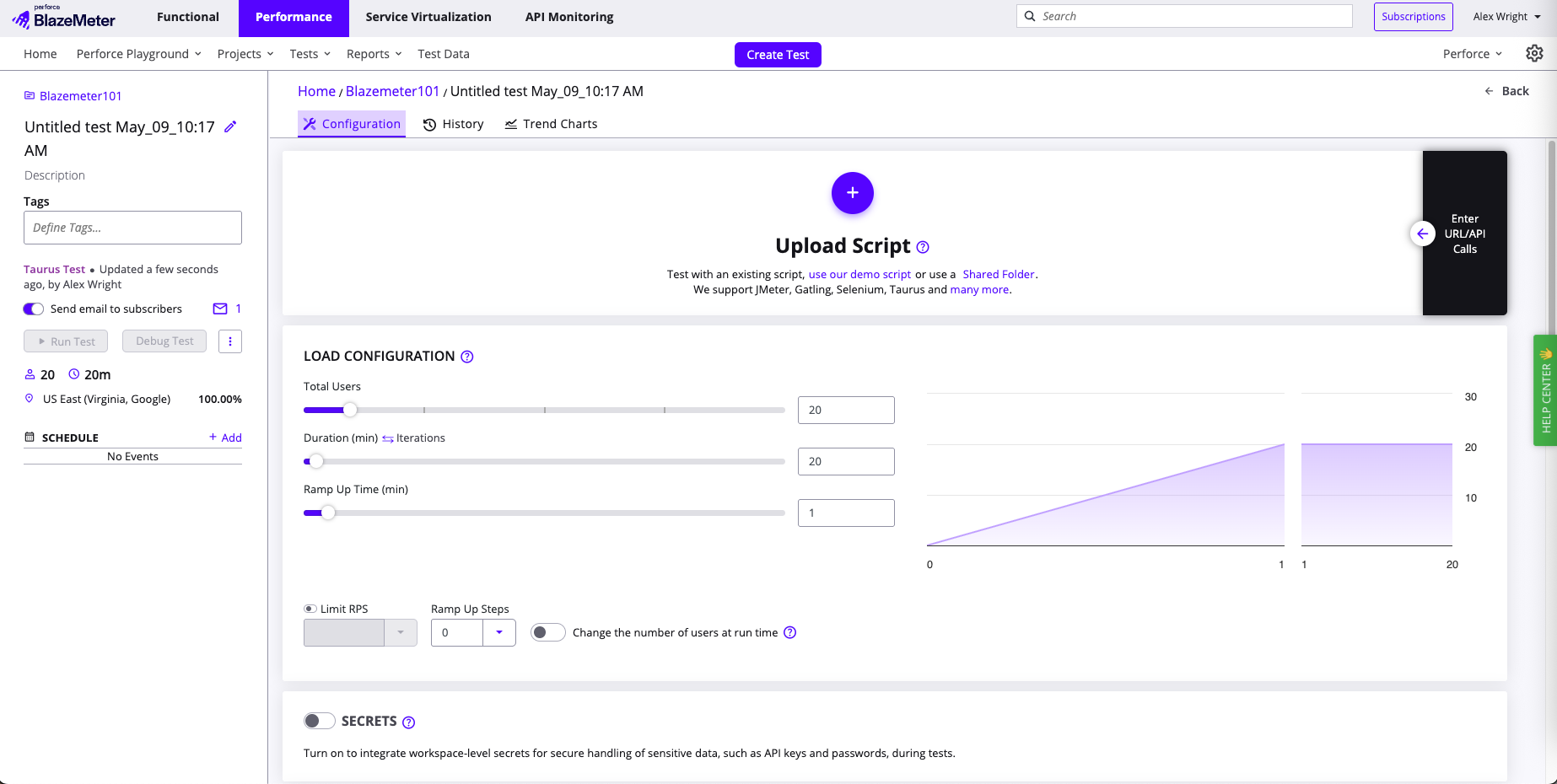 You can learn more about Taurus testing here, or you can just use the following example script with a minimal configuration as a template: